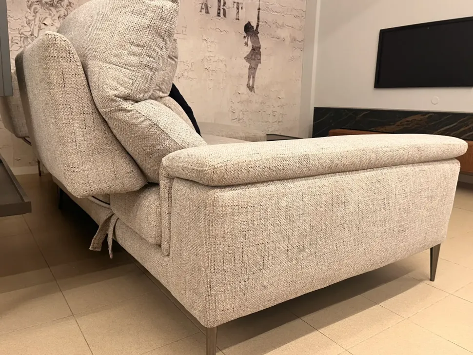 L’imbottitura dei cuscini di seduta è in poliuretano espanso indeformabile, assicurando una seduta sempre confortevole e sostenuta. I cuscini dello schienale, invece, sono imbottiti con piuma d’oca sterilizzata e fibra di poliestere suddivisa in comparti, offrendo un supporto morbido ma strutturato. Il meccanismo per il movimento dello schienale in metallo permette di regolare la profondità del divano da 110 cm fino a 135 cm, adattandosi alle esigenze di relax più diverse.