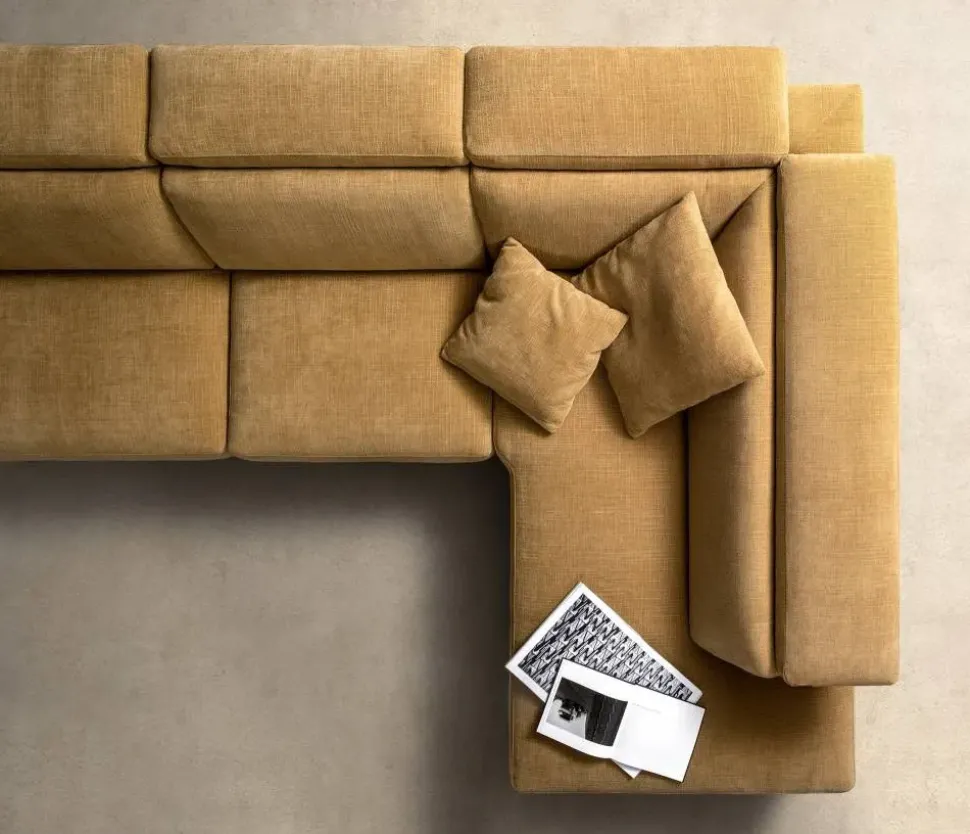 - Il prezzo esposto è relativo al divano Space Time come in foto, nuovo da produrre di cm 290×205, con rivestimenti a scelta in categoria A, con piedi di serie Brim.