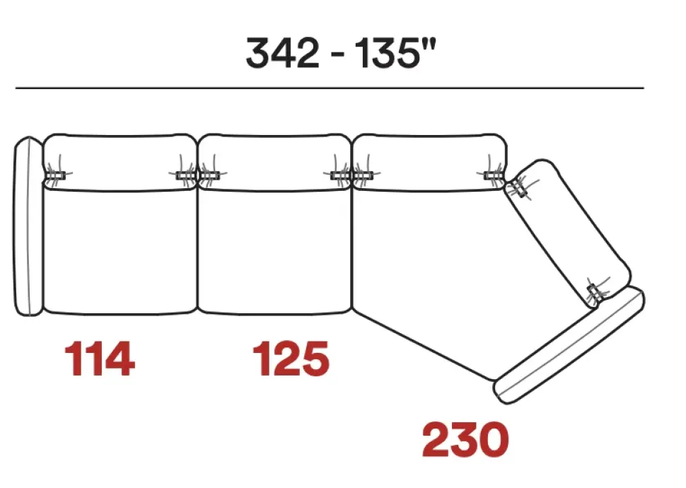 – Dimensioni: cm L 342 x P 98 / 132 x H 91