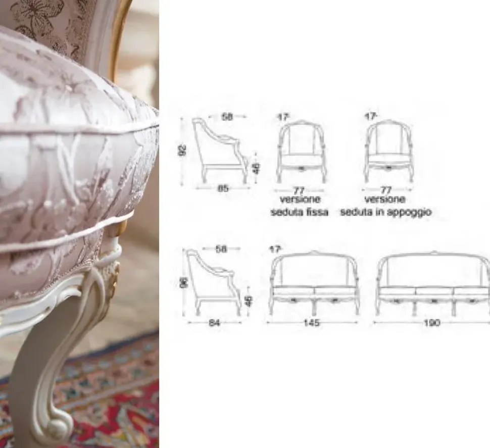 Scheda tecnica di Divano maestà vari rivestimenti e colori