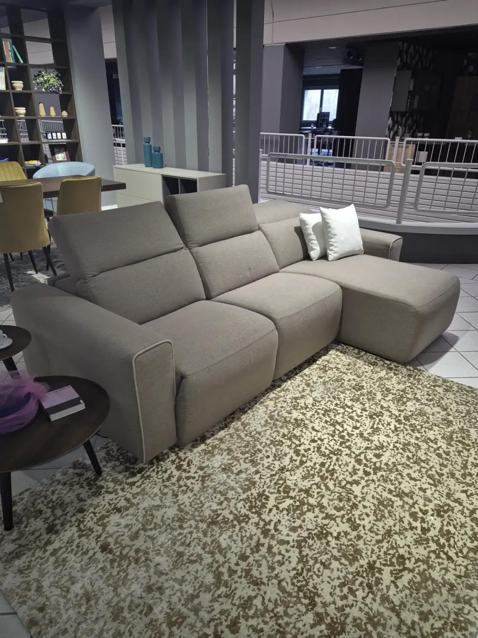 Divano 2 posti maxi in tessuto con recliner elettrico e chaise longue maxi dx.