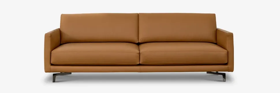 Divano Doimo Salotti, modello Bart in pelle soft touch 784 colore marrone con piedi in acciaio.