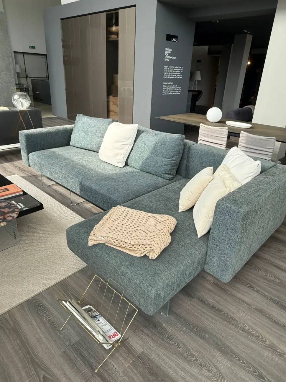Il Divano Chaise-longue Lago DIVANO AIR è un capolavoro di design che unisce eleganza e funzionalità. I suoi supporti in vetro extrachiaro temperato, agganciati al telaio tramite un sistema brevettato, conferiscono una sensazione di leggerezza e trasparenza, rendendolo perfetto per qualsiasi ambiente moderno. Questo divano non è solo un elemento d’arredo, ma una vera e propria esperienza di comfort.