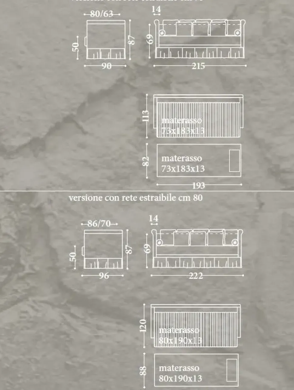 divano e’ completo di 2 materassi in espanso da 14cm.