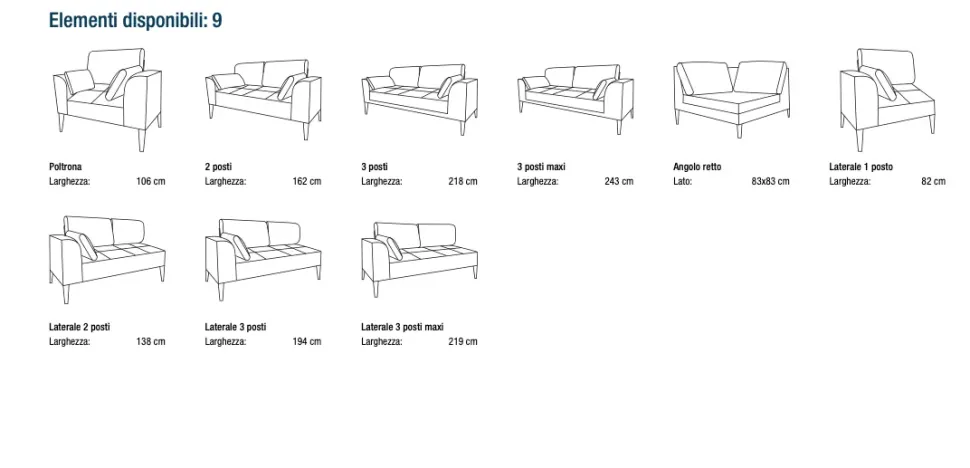 - Tipologia divani: 3 posti, seduta fissa