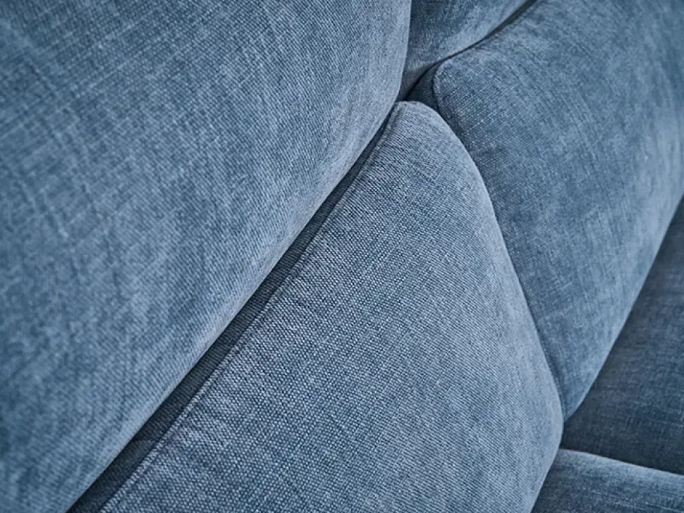 Divano 2 posti MAX DIVANI mod. TENDER, con poggiatesta reclinabile, rivestimento in Tessuto Idrorepellente Nirvana col. 014 Blu, con Piedini a slitta in metallo col. 42 Grigio RAL 7022