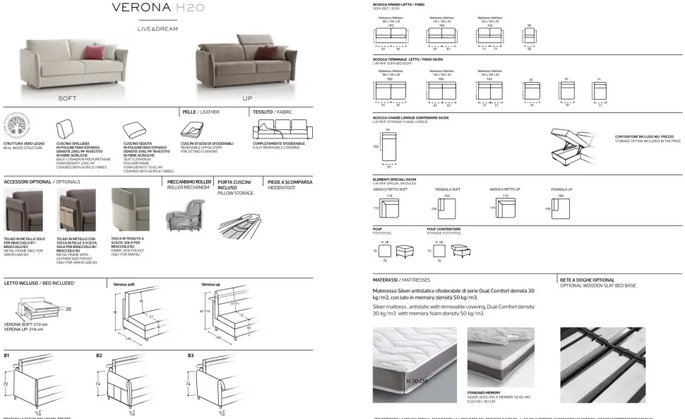 - Il prezzo esposto è relativo al divano letto Verona Soft con rete e materasso di cm 160 x193.
