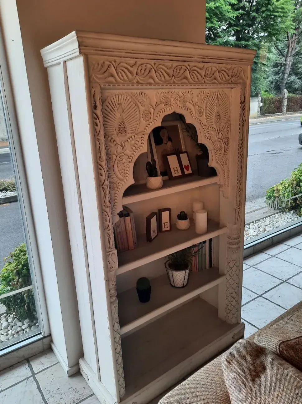 Libreria classica a giorno con 4 aperture, in legno decorata Trasporto escluso.