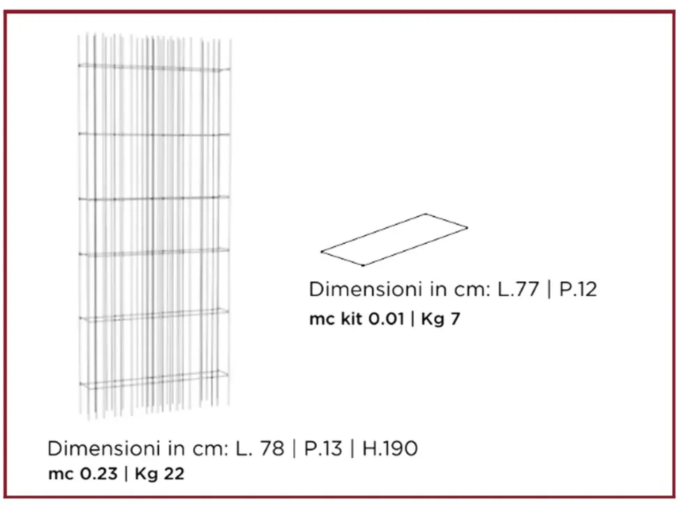 Metrica è la libreria del tuo living, ma anche il sistema espositivo del tuo negozio di accessori, o il luogo in cui riporre le bottiglie pregiate del tuo lounge bar. Metrica è perfetta per la tua casa e il contract. La struttura semplice sfrutta la lavorazione industriale del tondino cadenzato in differenti diametri e secondo una partizione irregolare. Il volume essenziale si delinea grazie all’incontro di linee rette: il ritmo è scandito dalle bacchette posizionate ad intervalli diversi su una struttura apertamente rigorosa entro la quale i libri e gli oggetti inseriti ne completano la forma scrivendo di volta in volta nuove composizioni.