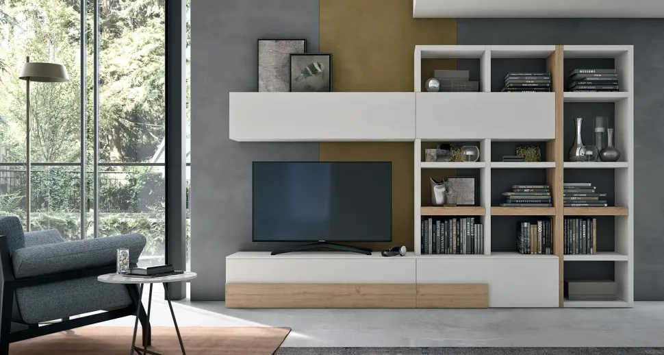 - un soggiorno, che sia di gusto classico o moderno, richiede diversi complementi al fine di essere ultimata a dovere; tra questi non mancherà una composizione con libreria, imprescindibile per l’ ottimizzazione e la resa estetica dello spazio.