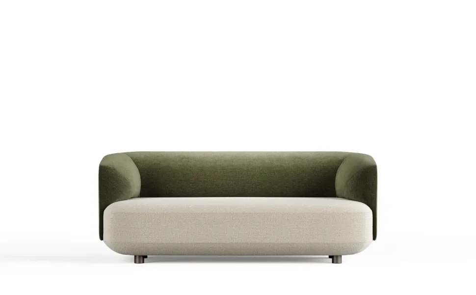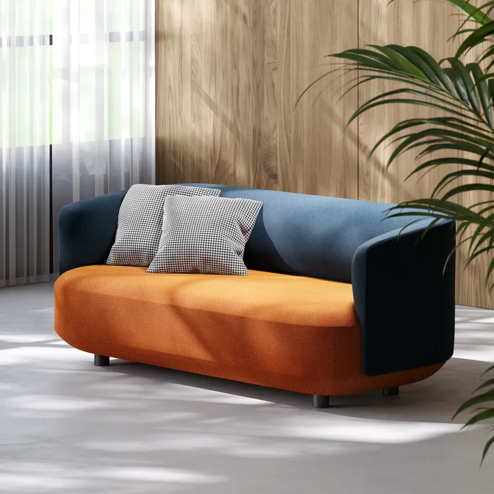 La proposta è del divano 2 posti con schienale e braccioli, con rivestimento bicolore cat. D