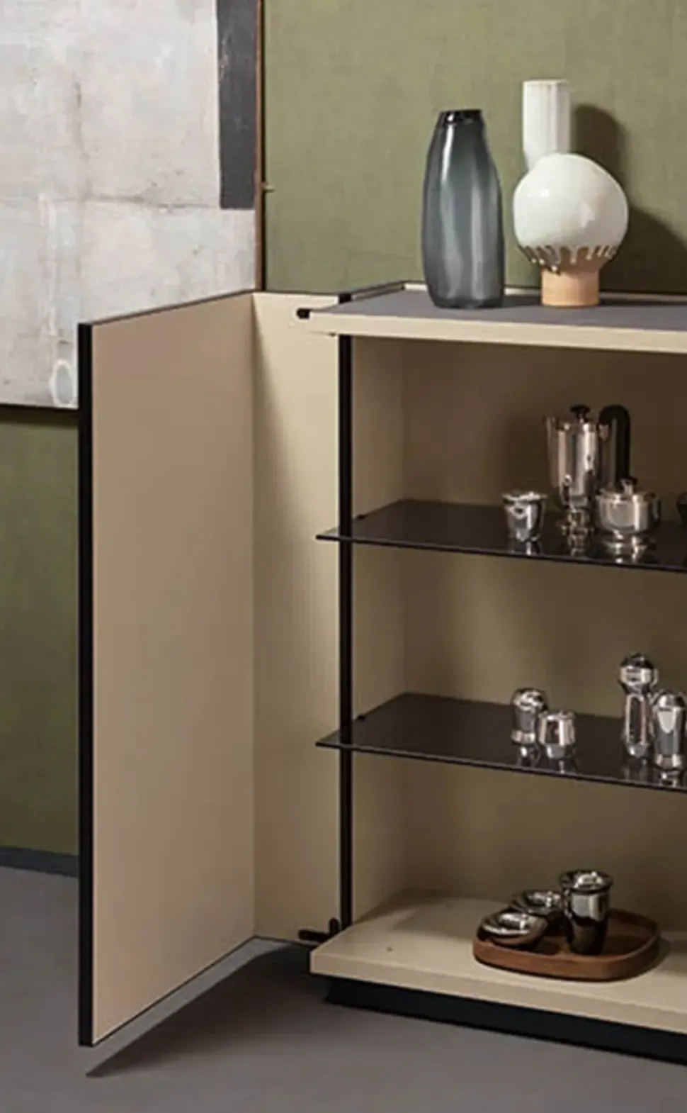 zoccolo colore lavagna opaco, interno e top laccato opaco.