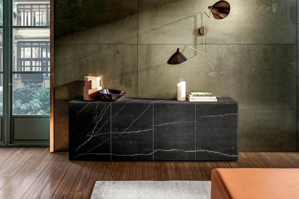 Il colore della madia è interamente Marquina opaco XGLASS (ante, struttura e top).