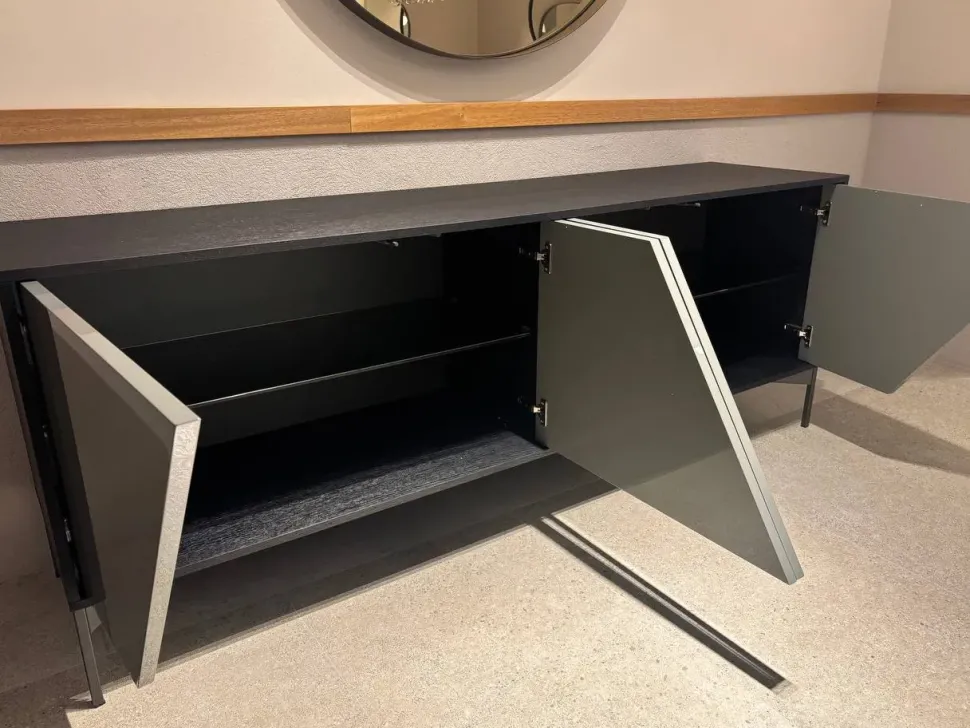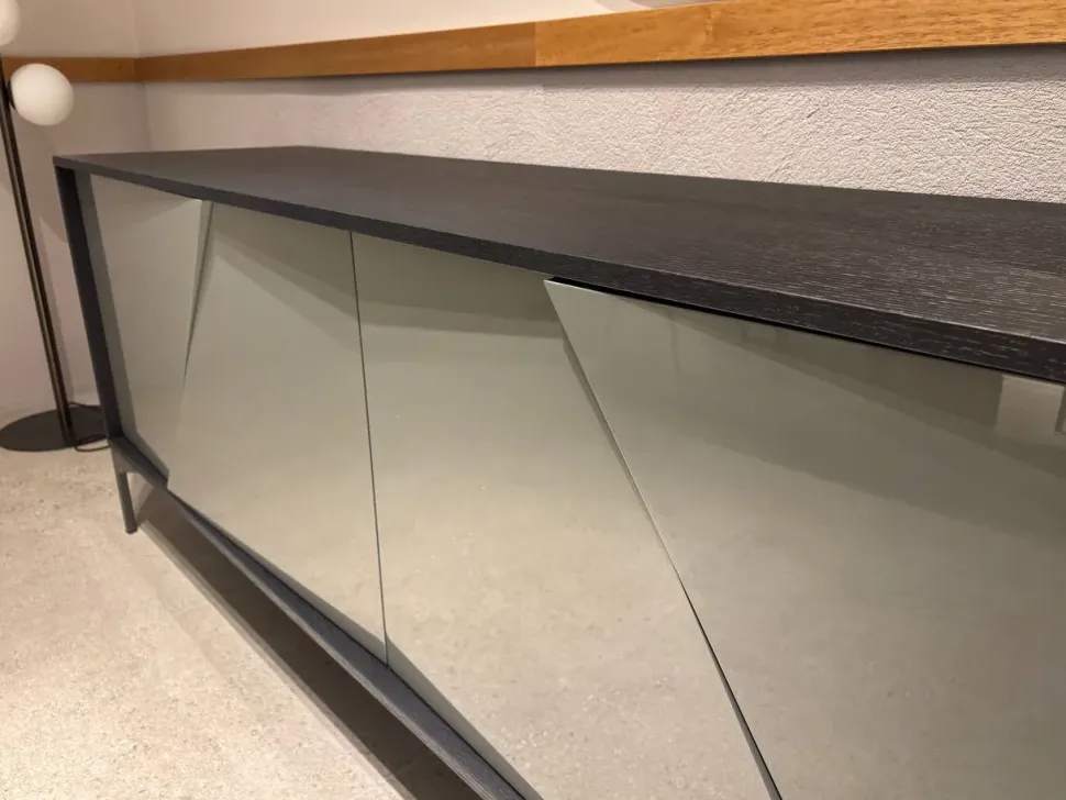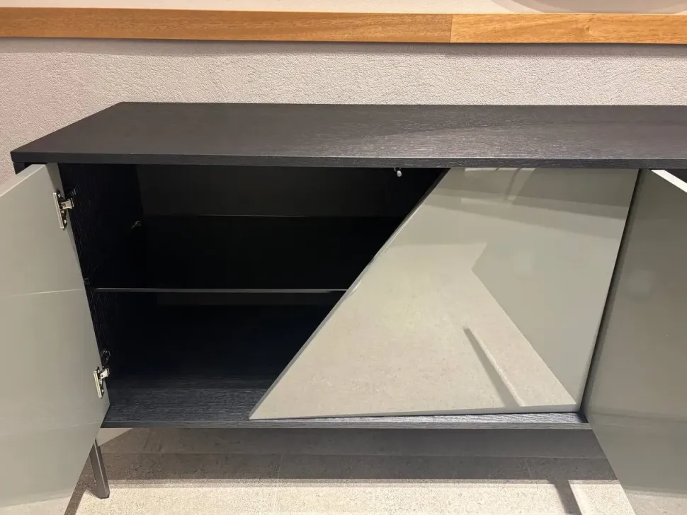 Credenza con 4 ante e 2 ripiani vetro trasparente grigio.