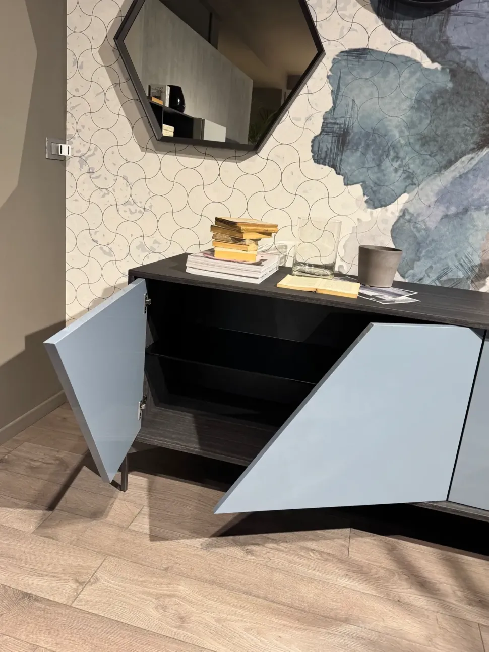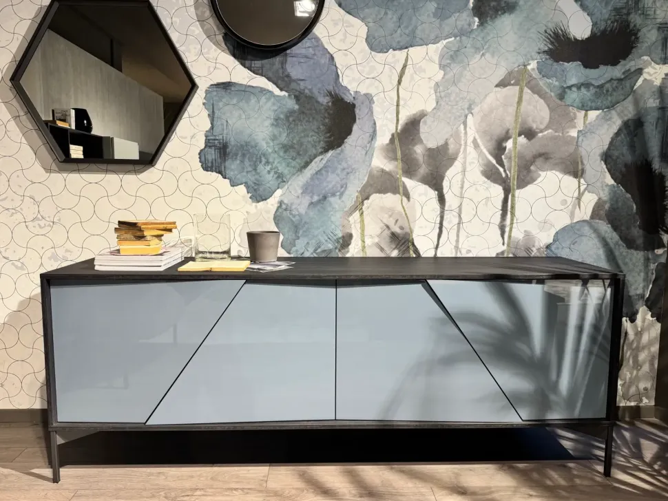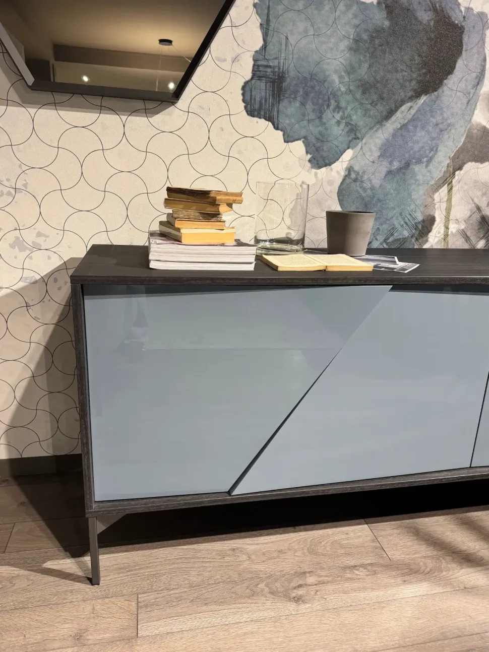 Madia Kendo di Alf Da Frè scontata a 1.163,00 euro. Madia moderna caratterizzata da un particolare gioco geometrico delle ante, ciascuna anta presenta un taglio di 30 gradi che la divide in due parti non perfettamente complanari ma lievemente dissestate, regalando alla superficie un effetto di chiaroscuro. Credenza composta da quattro ante, all’interno due ripiani in vetro trasparente grigio, sollevata da terra da un basamento con piedini perimetrali in metallo moka shine. Madia proposta con finiture differenti, la struttura e il top sono in nobilitato eukalipto fossile, mentre le ante sono laccate lucide pacifico. Madia di design perfetta da collocare in ogni zona giorno o sala da pranzo. Misure madia: larghezza 210, profondità 50, altezza 78 centimetri. Prodotto che potrete vedere all’interno della nostra esposizione a Giussano, in provincia di Monza e Brianza. Per qualsiasi informazione non esitate a contattarci.