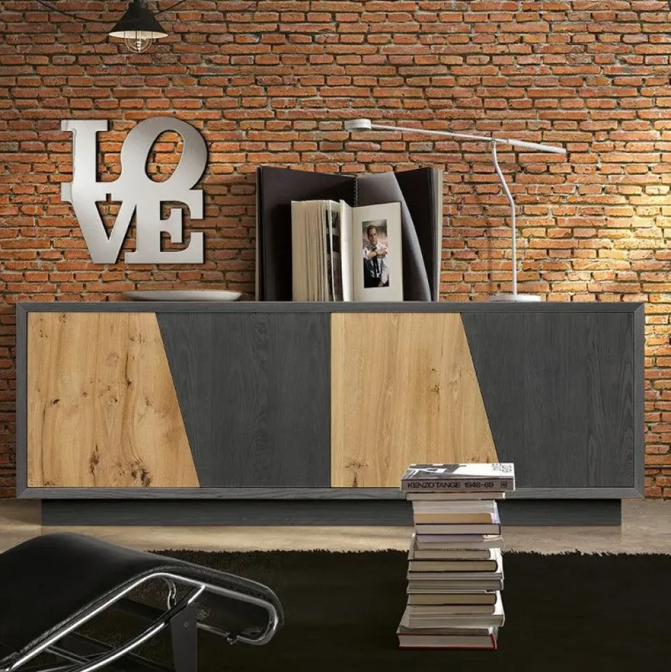 Le madie e i mobili per il soggiorno, come il modello Lisbona mostrato in foto, sono fondamentali sia esteticamente che per quanto concerne la funzionalità: potrai riporci libri, oggetti d’uso quotidiano o tipicamente decorativo. La madia in legno nell’immagine unisce le doti di funzionalità e stile del locale dando vita a un concept d’arredo moderno.