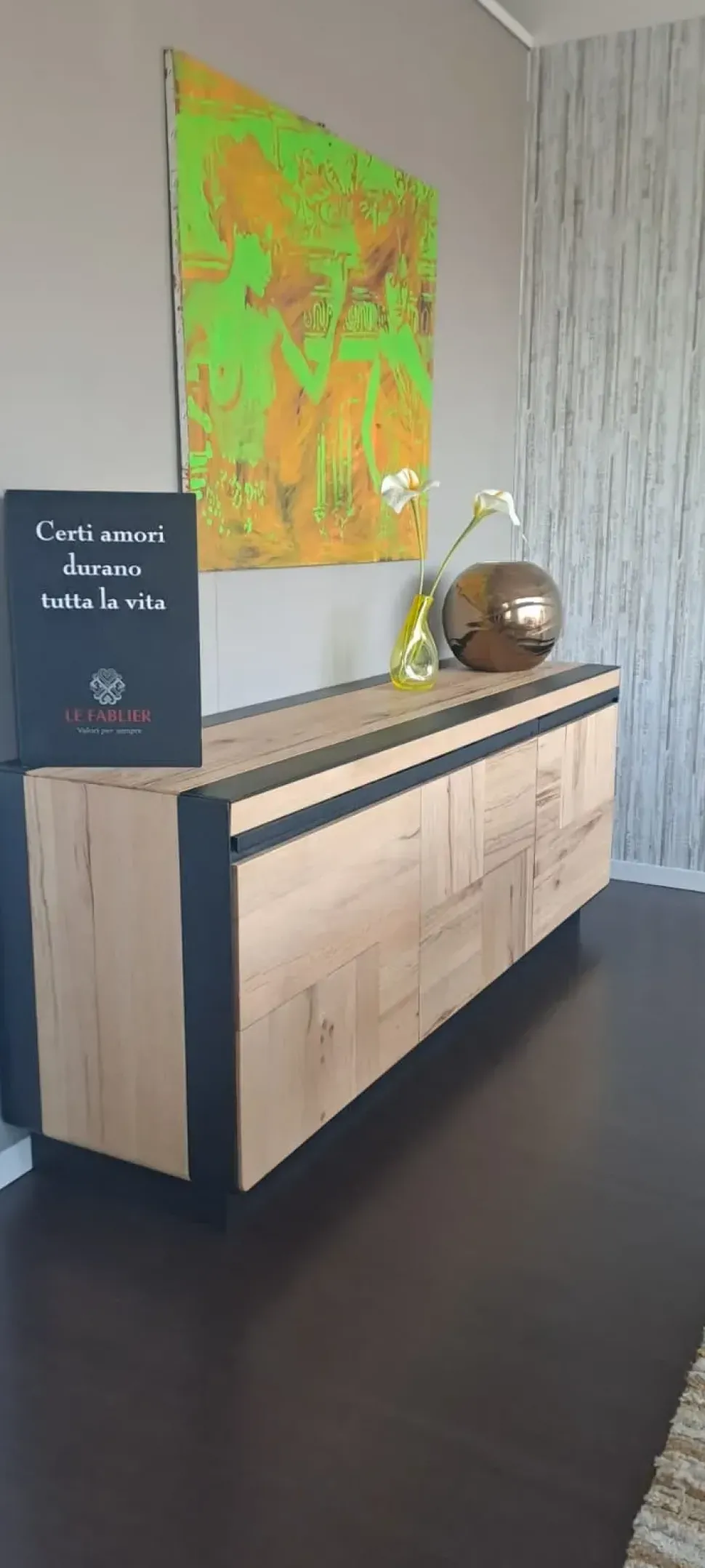 Elegante Madia di design della ditta Le Fablier. Realizzata in legno massello di rovere invecchiato e tiglio laccato nero. Mensole interne dotate di dispositivo anti ribaltamento, chiusura delle ante con sistema slow motion. Dimensioni espresse in cm. per Larghezza, Altezza, Profondità: 210 x 82 x 53. La madia è disponibile in 07 finiture. LA FINITURA DISPONIBILE IN PRONTA CONSEGNA PRESENTE ALL’INTERNO DELLO SHOWROOM É ROVERE NATURALE.
