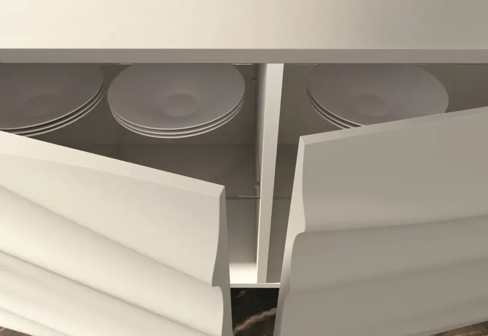La madia Fluida nella fotografia è appartenente alla nostra collezione di mobili e oggetti accessori senza maniglia.