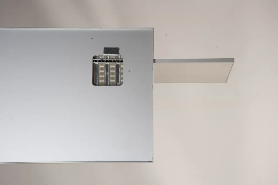 Qualche dettaglio: texture, stile e dimensioni della mensola Mensola blade in alluminio Bonaldo