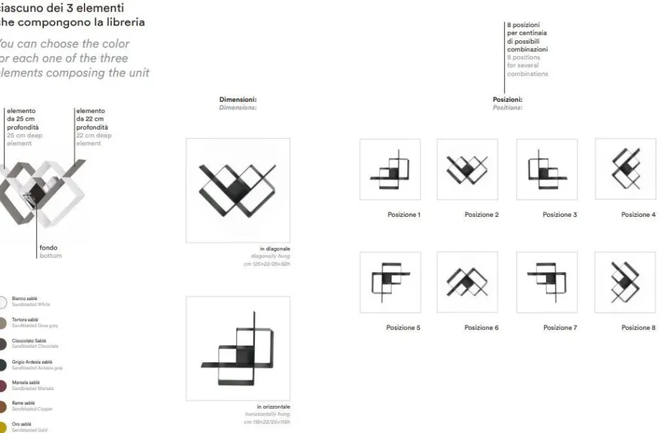 scegliere il colore per creare la combinazione che più si adatta alle tue esigenze. La struttura realizzata in acciaio verniciato è estremamente resistente ed il montaggio prevede 6 punti di fissaggio a parete per garantire una grande portata.
