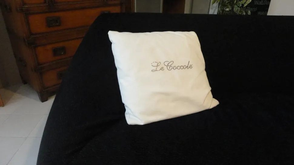 il secondo divano misura cm 220 di larghezza, cm 100 di profondità è completo di un cuscino arredo con strass.