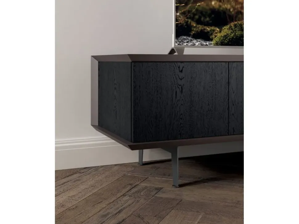 Nella fotografia è ben visibile il legno con cui questo mobile porta tv è costruito: la pluriennale competenza Ozzio assicura materiali sempre resistenti e belli.