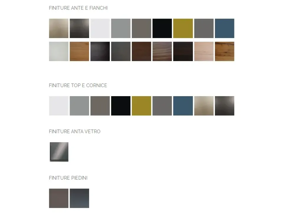 Madia con contenitore laccato, ante e fianchi in essenza o laccato.