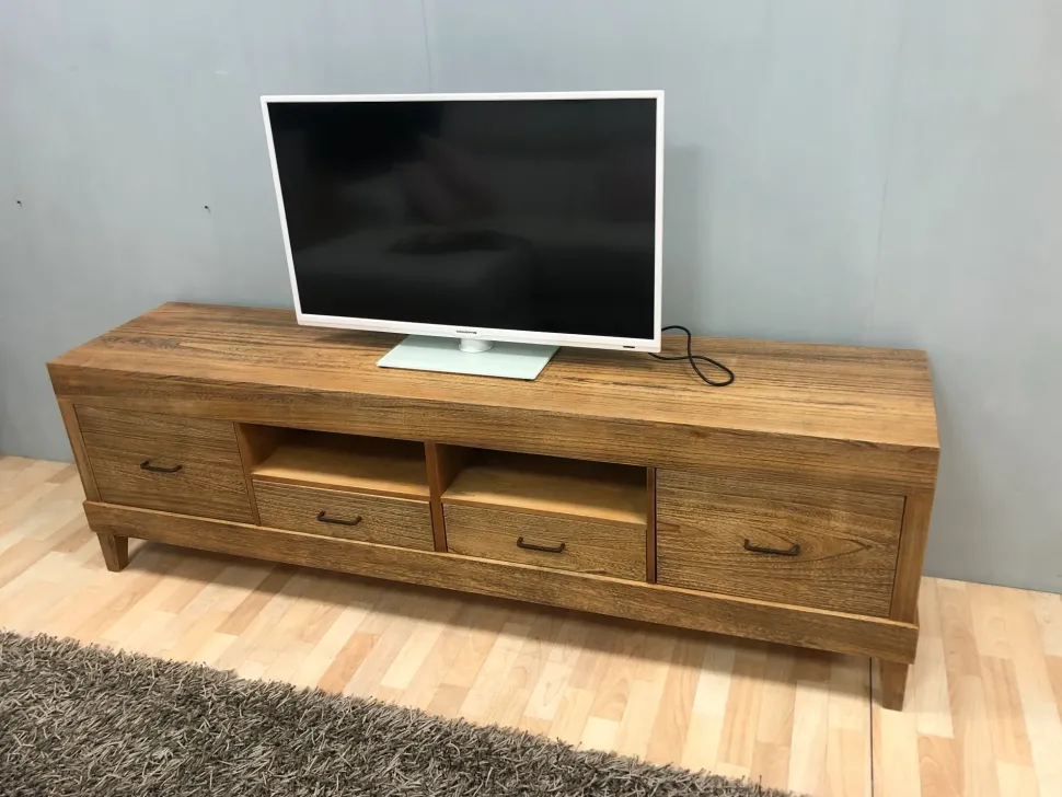 Mobile porta tv in legno massello sabbiato 4 cassetti guide in legno L 200 cm + P 45 cm + H60 cm