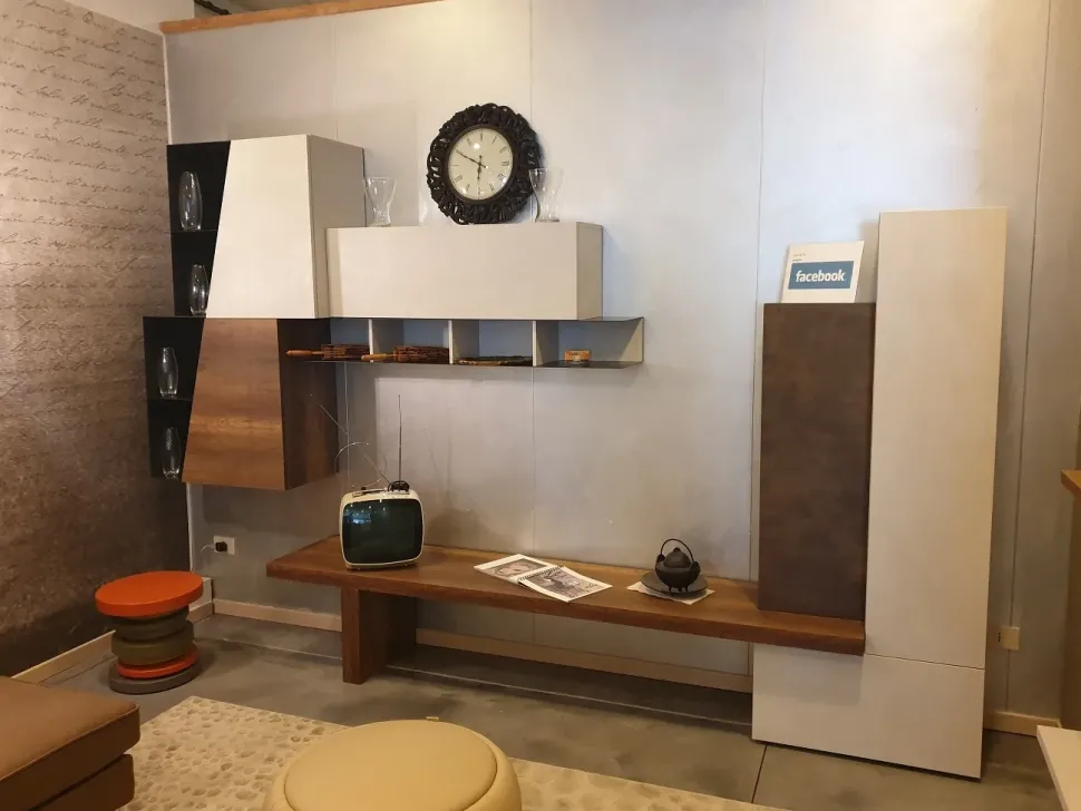 - Se desideri valorizzare il living con un mobile a terra, scopri questa parete attrezzata in Offerta Outlet: saprà rendere lo spazio pratico e dinamico senza risultare d’intralcio.