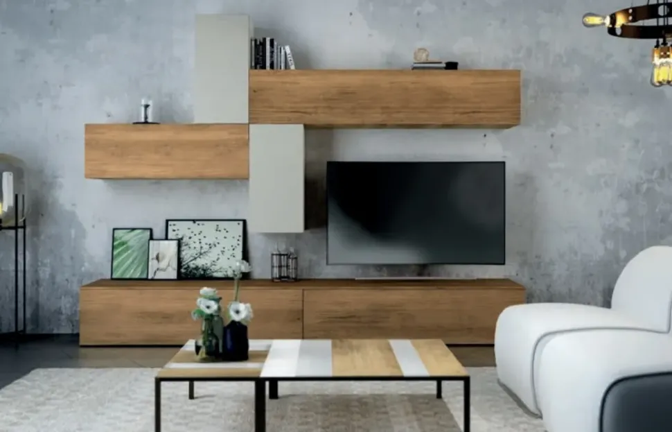 Per arricchire un living design scegli una parete attrezzata che mantenga una certa coerenza stilistica, come questo modello Atlante skt15 a prezzo ribassato.