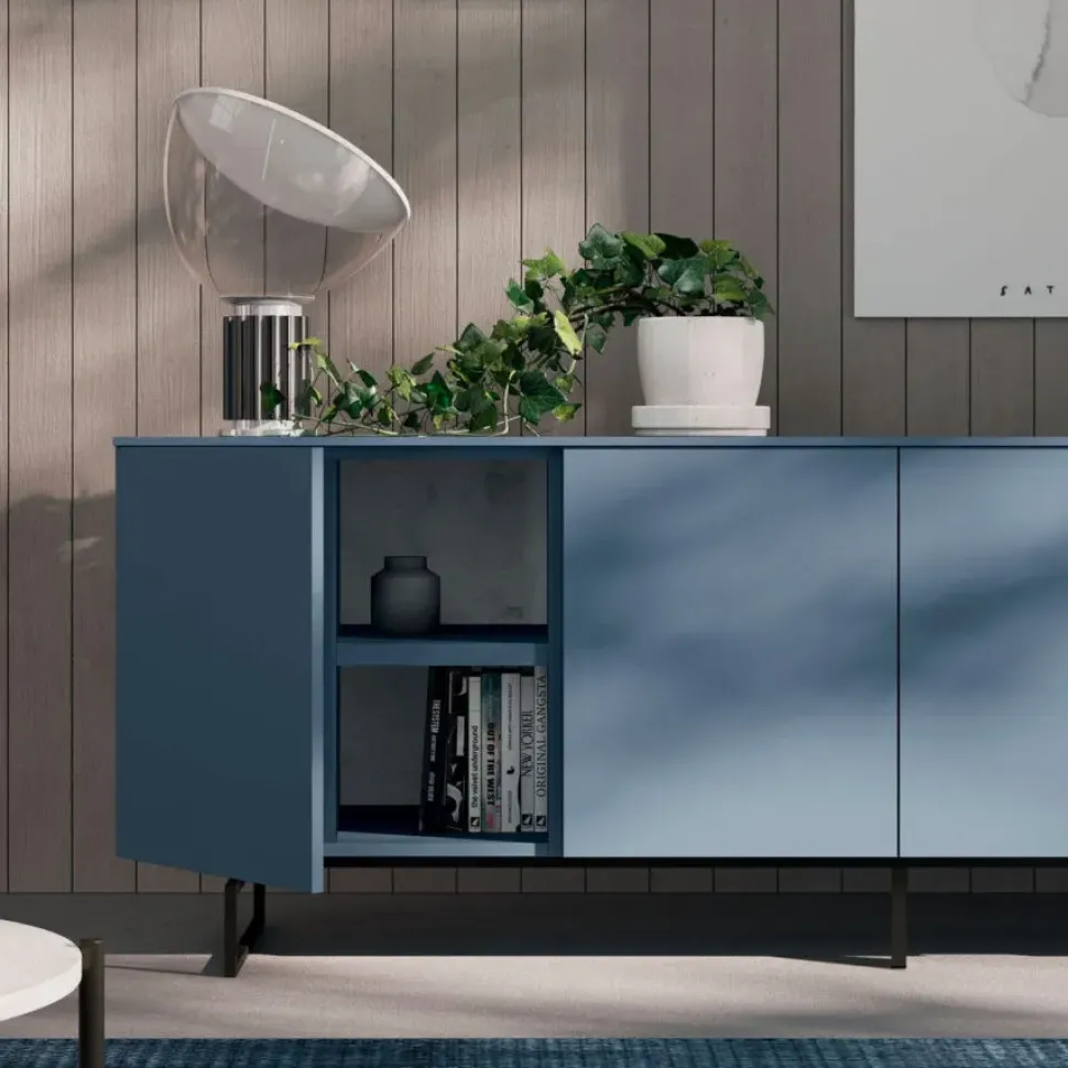 - La composizione per il living qui visibile è realizzata in materiali pregiati e resistenti nel tempo: questo modello, in particolare, è in laccato opaco.