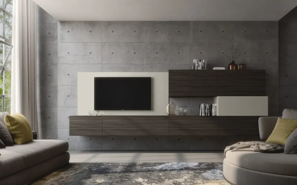 La zona giorno si compone di differenti mobili e oggetti accessori capaci di ultimare lo spazio valorizzando ogni angolo; tra questi c’è sempre una parete attrezzata come il modello Ingrid10 di S75 mostrato in foto, ideale per dare vita a un soggiorno pratico e dinamico.