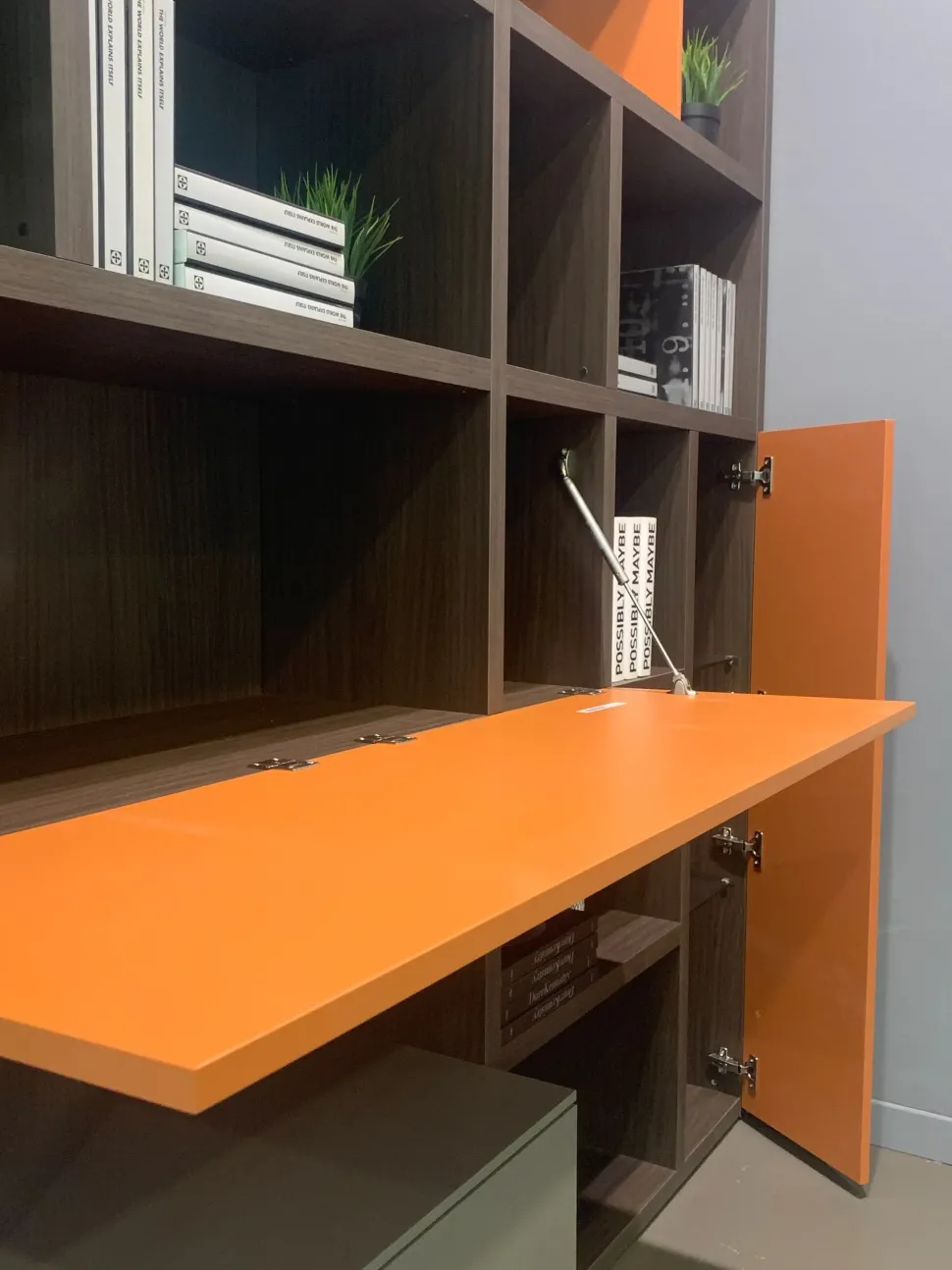 - Nell’immagine è ben visibile il laminato materico con cui questa parete attrezzata è stata costruita: la pluriennale professionalità Santalucia garantisce materiali sempre resistenti e esteticamente gradevoli.