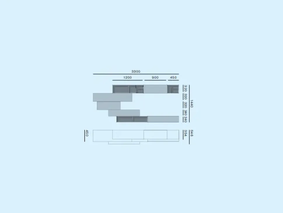 - I locali interni devono essere conformi alle necessità di chi li frequenta, per cui i mobili e oggetti accessori non devono mai risultare ingombranti: il modello L5c02 va da 301 a 350 cm di larghezza.