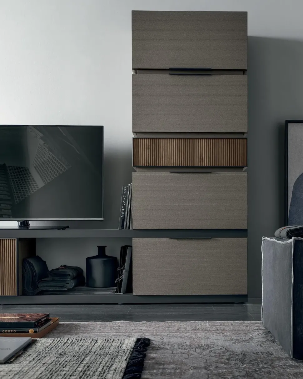 Arreda il tuo soggiorno con uno tra i nostri mobili e oggetti accessori senza maniglia: la parete attrezzata S002 ti attende per impreziosire uno spazio pratico e operativo.