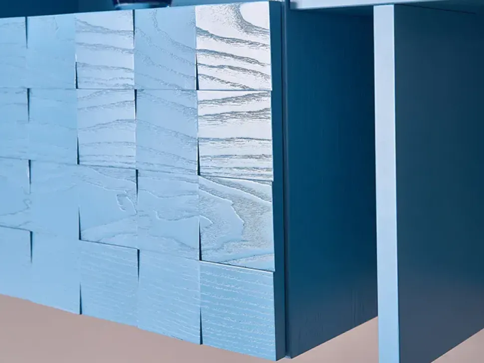 - Ante tipo Lido ed elemento bar/libreria in finitura frassino col. celeste polvere.