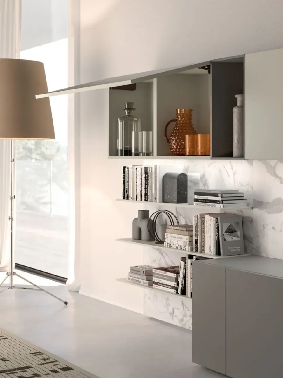 Arreda il tuo soggiorno con uno tra i nostri mobili e oggetti accessori senza maniglia: la parete attrezzata 10 ti attende per valorizzare uno spazio pratico e dinamico.