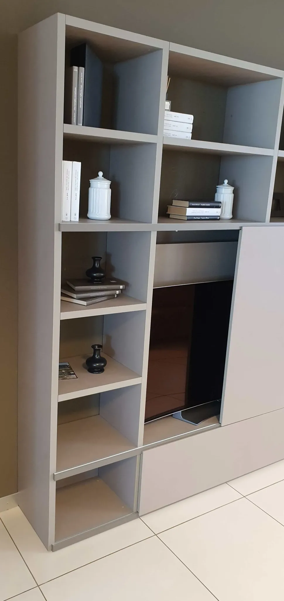 Grazie all’anta scorrevole potrete coprire il televisore quando non in uso e dare spazio alla libreria, che all’occorenza diventa parete soggiorno ospitando il televisore.