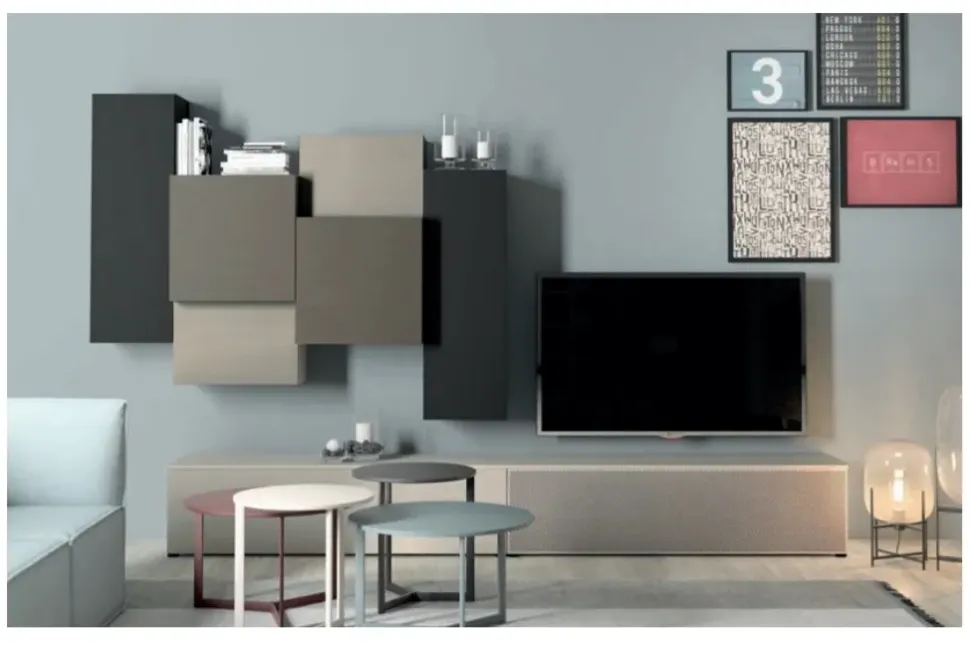 Per impreziosire un soggiorno design scegli una parete attrezzata che mantenga una certa coerenza stilistica, come questo modello Atlante skt29 a prezzo scontato.