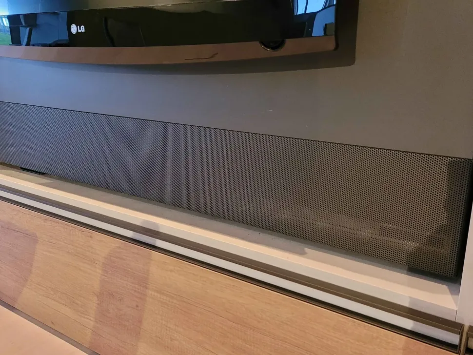 Il pannello TV posto centralmente con apertura verso sinistra offre un comfort superiore rispetto alla semplice tv appoggiata. Infatti tutti gli apparecchi Tv si possono alloggiare comodamente dietro e la tv si può orientare per offrire una migliore visione