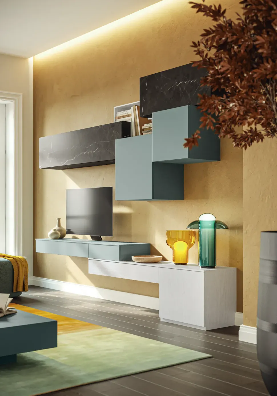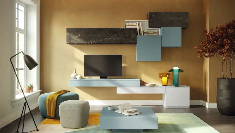PARETE ATTREZZATA GIESSEGI SOSPESA. FINITURE DI TENDENZA ARREDANO CON STILE IL TUO LIVING