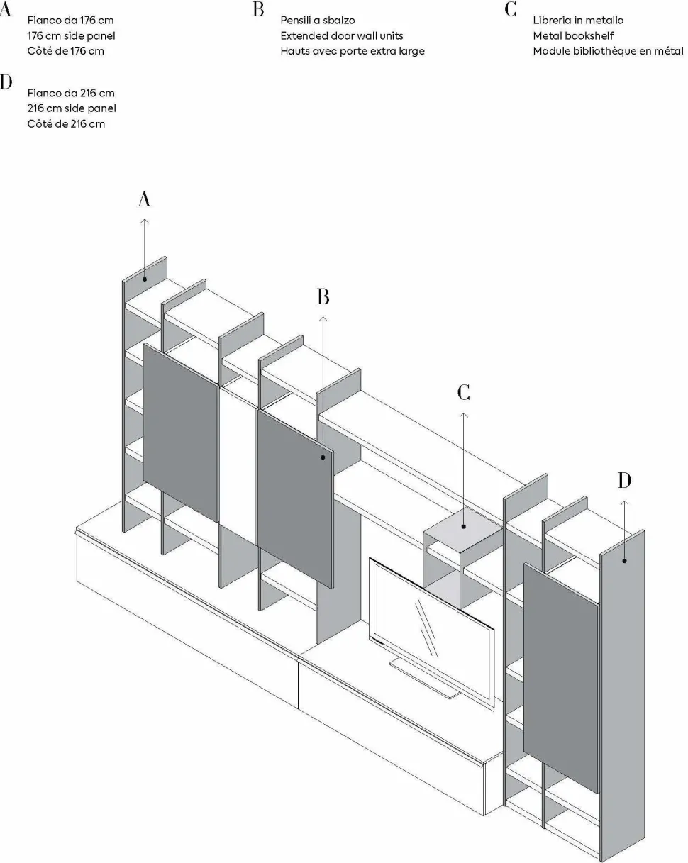 - La multifunzionale e ampio parete attrezzata in foto è un mobile a terra che appartiene alla nostra linea di mobili e complementi di Imab, specialista del settore.