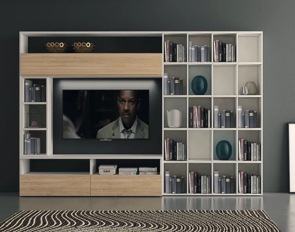 - Forme decise e uno stile unico contraddistinguono questa composizione per la zona giorno, rendendola ideale per valorizzare un luogo in stile moderni.