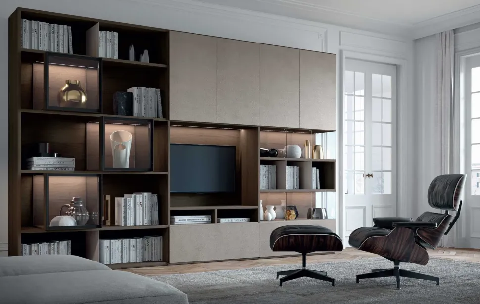 La zona giorno si compone di vari mobili ed elementi accessori capaci di completare lo spazio usufruendo al meglio di ogni angolo; tra questi non pu? mancare una parete attrezzata come il modello N?6 di Astor Mobili mostrato in foto, ideale per dare vita a un soggiorno operativo e pratico.