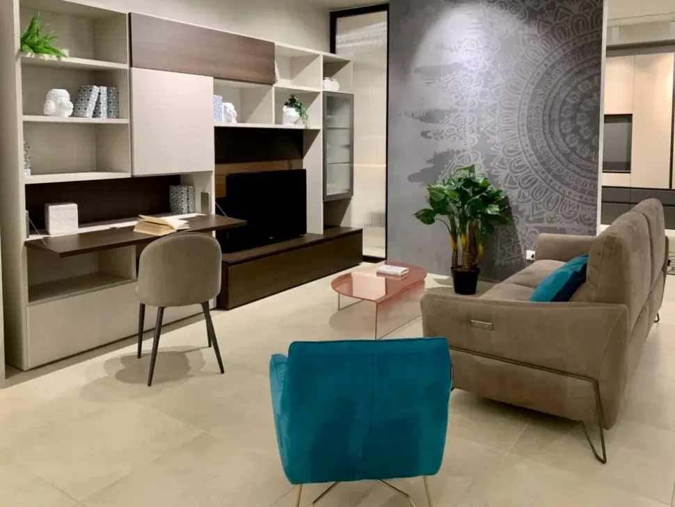 La zona giorno si compone di vari mobili e oggetti accessori capaci di ultimare lo spazio valorizzando ogni angolo; tra questi deve esserci una parete attrezzata come il modello Parete a spalla vano tv e pensili vetro di Tomasella mostrato in foto, ideale per dare vita a un soggiorno operativo e pratico.
