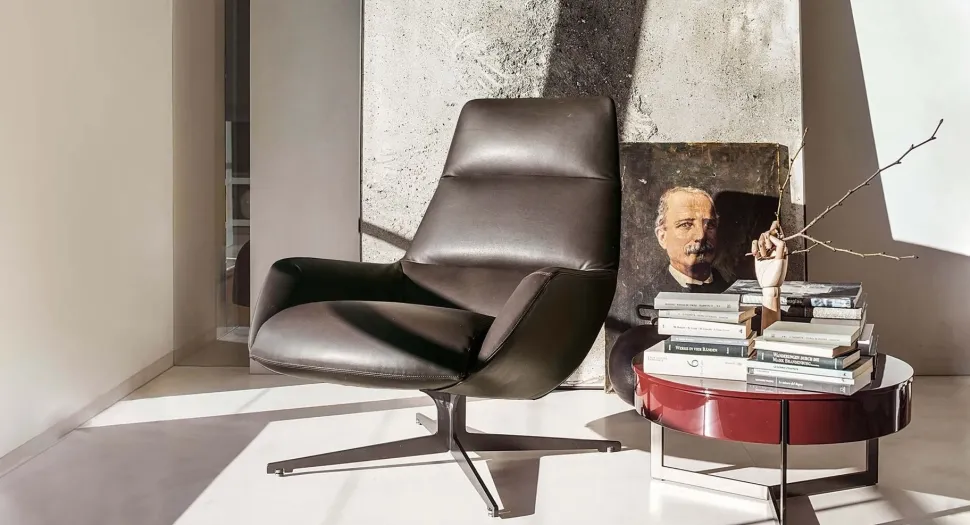 Firmata da Christophe Pillet la raffinata e avvolgente bergère Lady Jane dalle linee decise che riecheggiano le forme anni ’50. Una proposta dall’anima polivalente, elegante e confortevole, caratterizzata dal meccanismo che permette alla seduta di girare a 360°, è perfetta anche in contesti domestici. In pelle disponibile anche in tessuto.