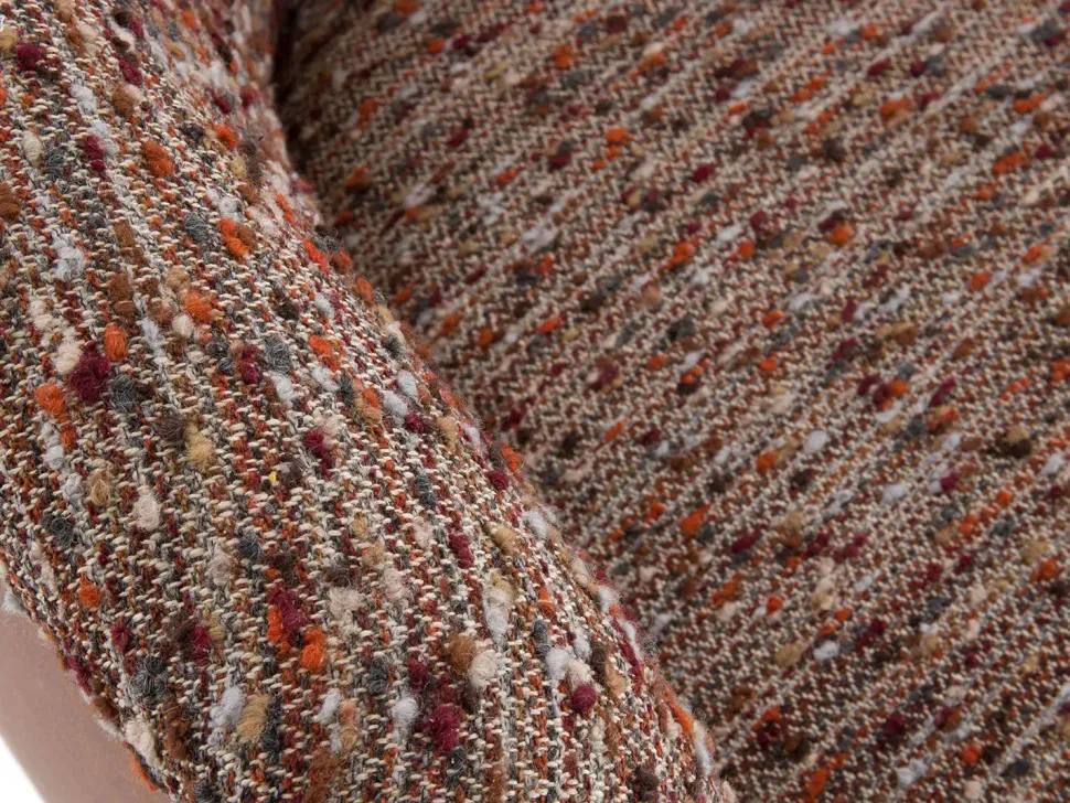 Il rivestimento bicolore, elegante e sofisticato, abbina armoniosamente la pelle Retrò dello schienale a un morbido tessuto decorativo misto lana per la seduta e l interno schienale, creando un raffinato gioco materico.