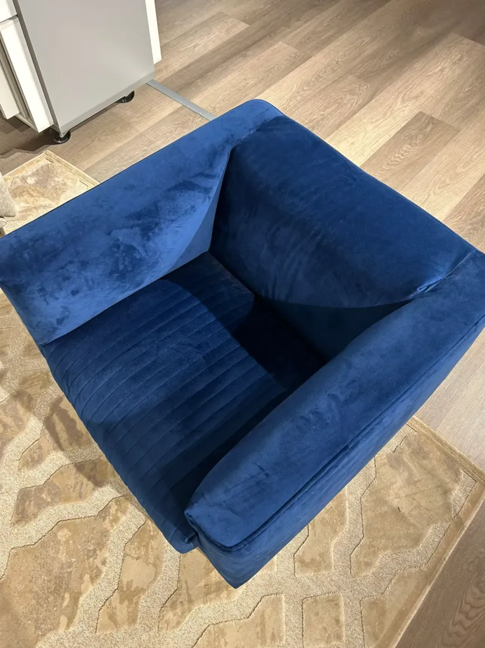 L78 H66 P79, piede “Link” H 18 cm in metallo nero , tessuto in velluto blu.
