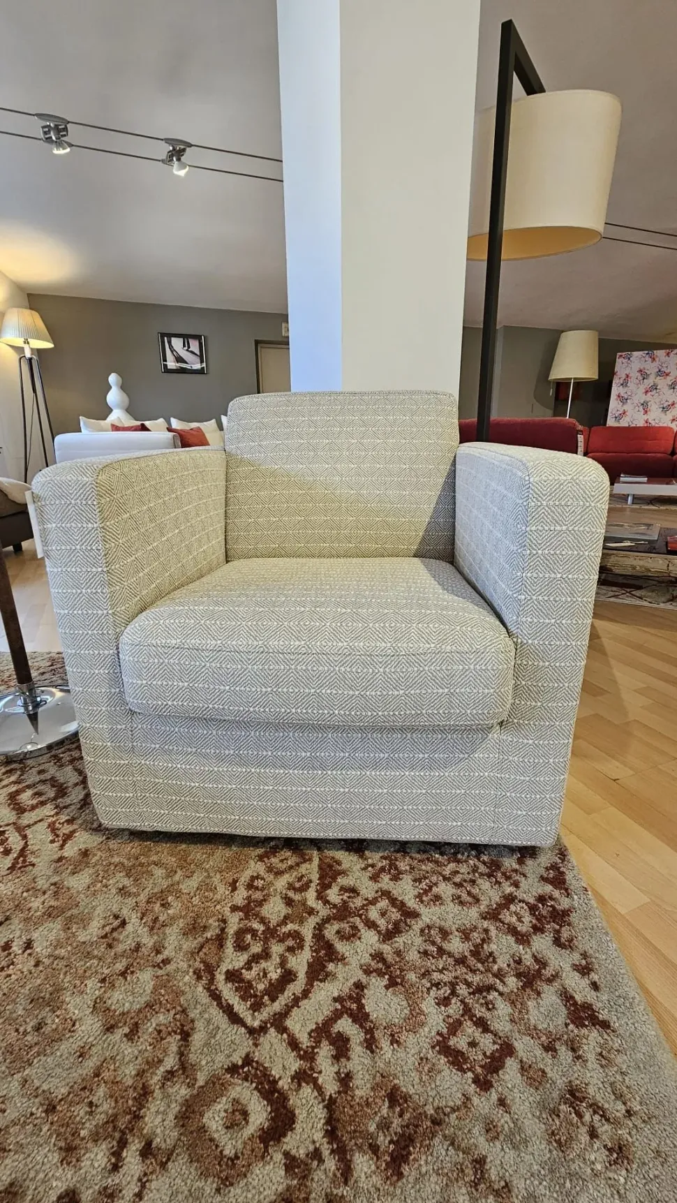 Poltrona cm.78*83*77 in tessuto misto cotone stop and clean (antimacchia) lavabile in lavatrice. Trasporto escluso isole e autoscala. ARTICOLO DI ESPOSIZIONE