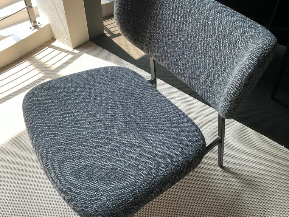 Poltrona di design di BONALDO con base in metallo piombo e rivestimento in tessuto. Disponibili 2 pezzi. Prezzo cadauno.